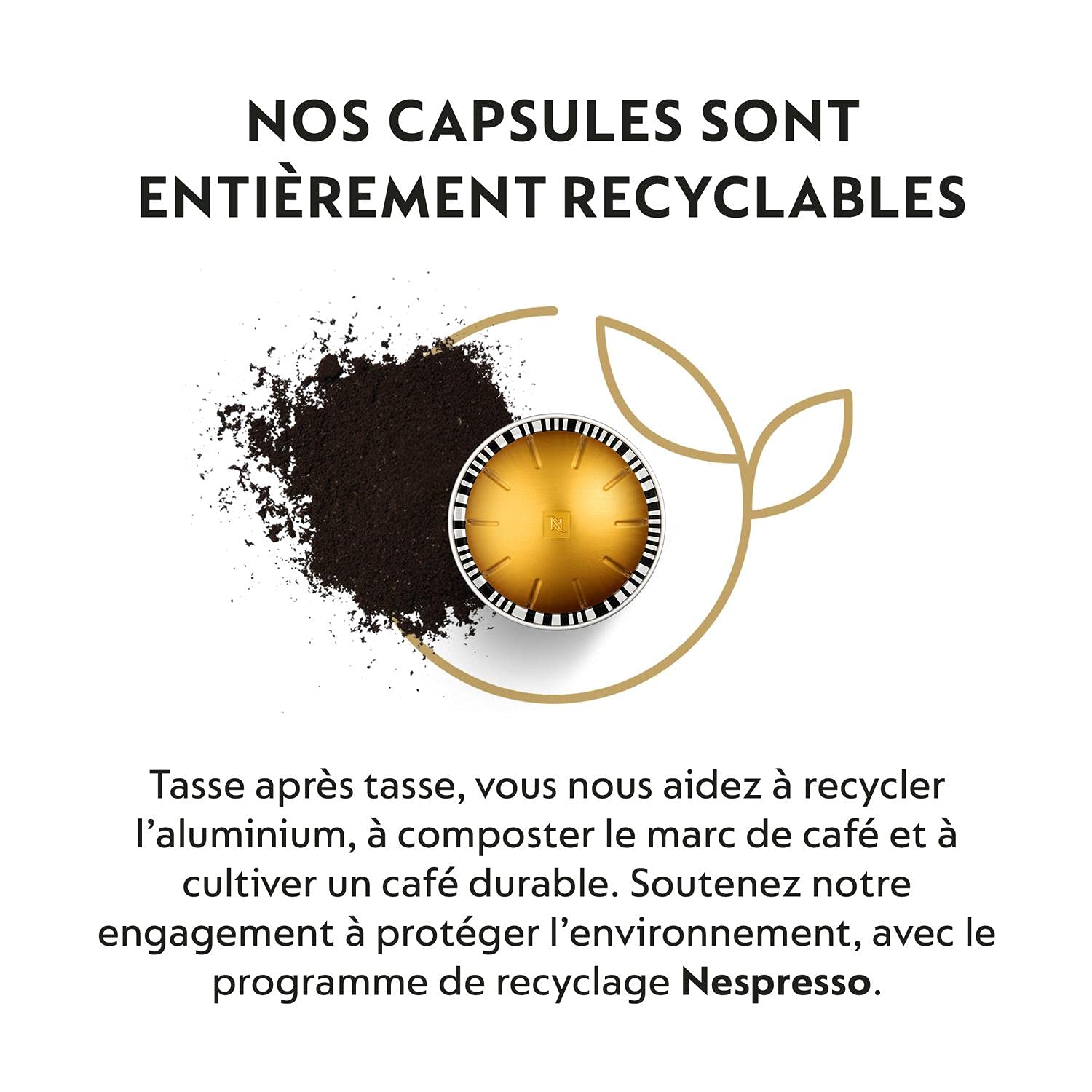 - Nos capsules Original et Vertuo sont faites avec au moins 80 % d'aluminium recyclé. L’aluminium est un matériau recyclable. N’oubliez pas de recycler !